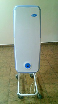 이온식 : 이온식 공기청정기는 일정한 거리를 띄워 둔 전극에 고전압을 흘려 공중에 이온을 방출시켜 공기 중의 미립자에 부착시키고, +(플러스)극의 집진판에 끌어당겨 입자를 제거하는 방식이다. 소비 전력이 적고 조용하다는 것이 장점이다. 다만 기본적으로 팬이 없기 때문에 정화될 때까지는 다소 시간이 걸리고, 방이 넓을수록 효과가 떨어진다는 것이 단점이다. 이 공기청정기에서 일시적으로 불안정한 이온이 나오고 그것이 바로 산소 분자와 합쳐져 오존 분자를 만들기 때문에 논란이 되기도 했었다.
